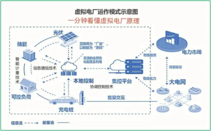 与传统发电方式相比,虚拟发电厂由分散的发电资源集合而成,并且由高度智能化的系统控制,可以快速响应指令,灵活调节发电量,根据市场需求进行智能调度,提高了能源利用效率,减少能源浪费。
