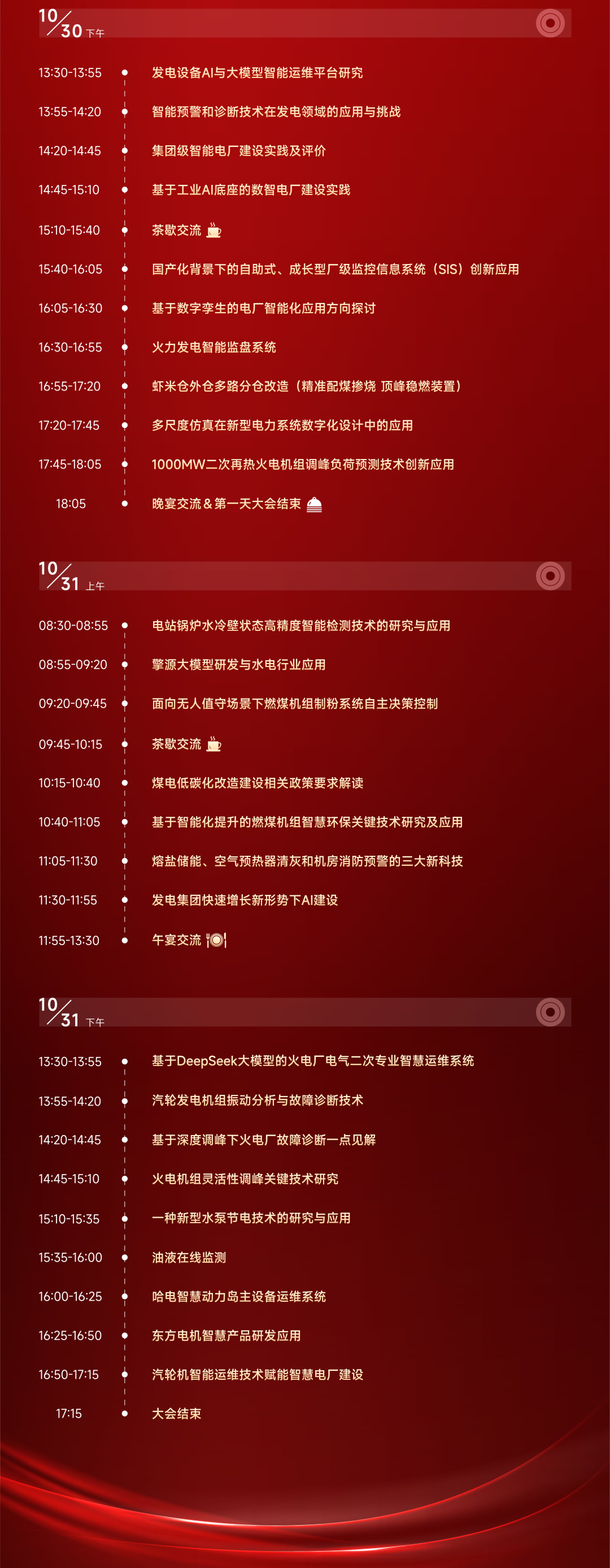 2025年10月30-31日,“第6届电力人工智能大会暨第4届电力行业数字化转型大会”将在山东省青岛市盛大召开!同期举办2025年度“电力人工智能及数智化转型论坛”、“第3届全国配电人工智能及数字化大会暨新型配电系统自愈与智能运维技术发展论坛”以及“第4届发电人工智能大会暨深度调峰技术交流会”。
