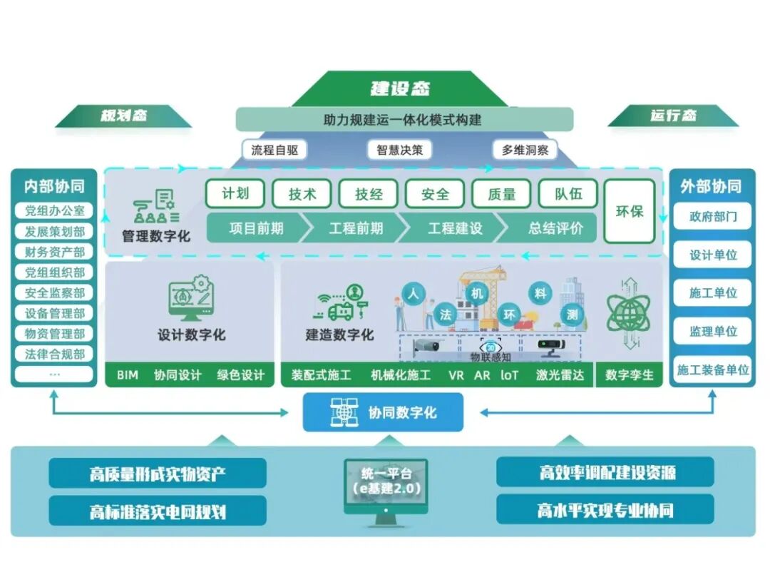 01平台介绍 e基建2.0是立足基建专业过程性、基础性、移动性、外部性等特征,打造的统一数字化平台。以数据要素和数字技术为驱动,围绕管理、设计、建造、协同四个方向转型升级,主要构建以“六精”为主要内涵的专业管理体系,实现基建各项目、各环节、各专业线上管控,推进以“四化”为基本特征的高质量建设业务支撑,解决基建业务线上管控、现场减负增效等实际业务问题,助力“规建运”一体化电网建设模式构建。 02应用成效 2024年4月,e基建2.0平台已在国家电网公司总部、省公司以及特高压公司全面推广应用,纳管35千伏及以上电压等级输变电项目(含特高压工程)1万余项,注册用户近30万人,日均活跃用户约2万人,每日在线召开站班会8千余次,服务10余万现场人员管控。同时,电子签章、微信小程序等创新应用有力赋能基层减负增效,实现施工作业票、站班会等日常工作电子化,开工报审等审批类业务线上流转,审批类效率提升超90%,减轻基层日常信息采集、系统应用和文件整理等工作负担40%以上。