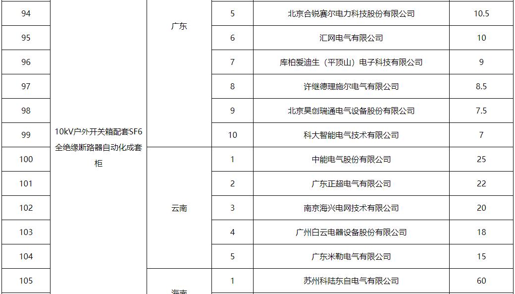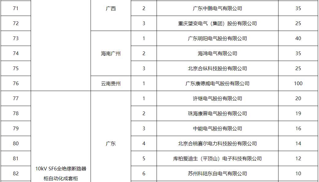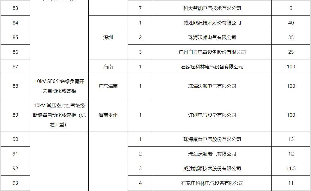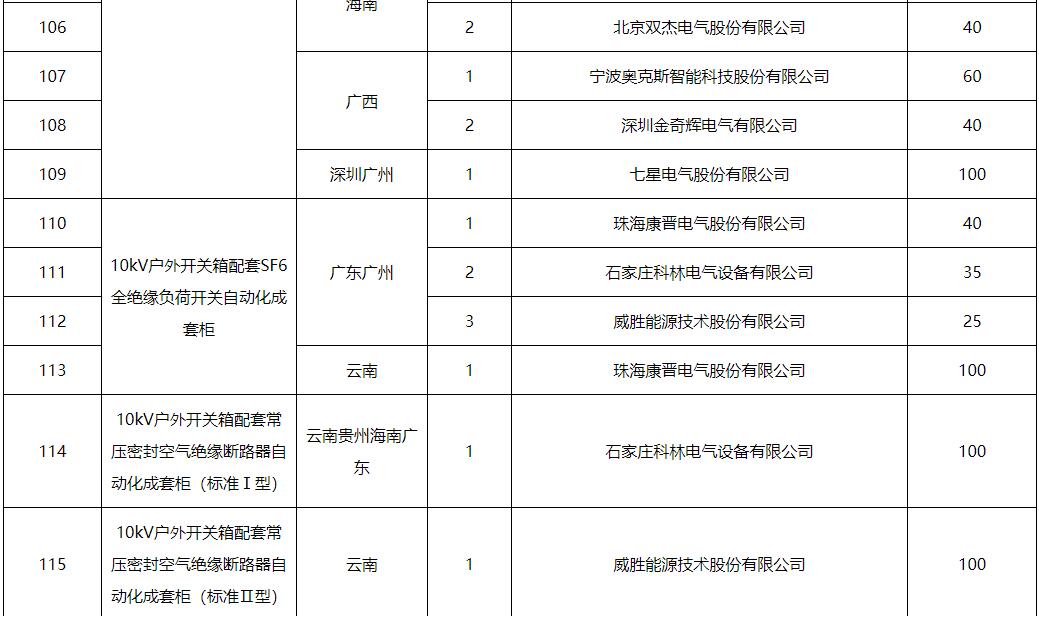 南方电网公司2023年配网设备第一批框架招标项目(招标编号:CG2700022001580324),确定中标人如下: