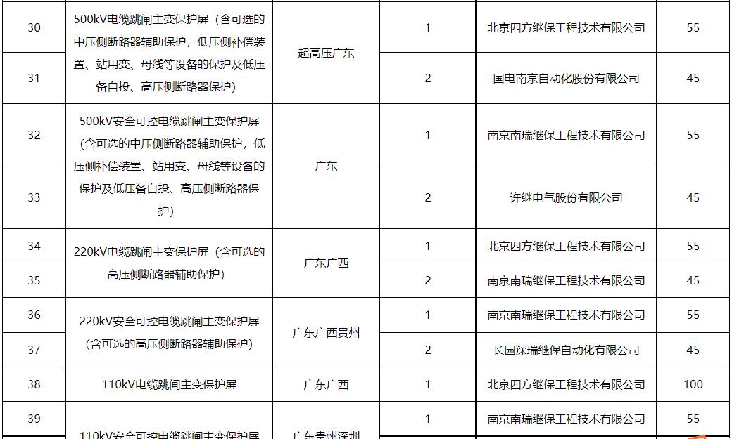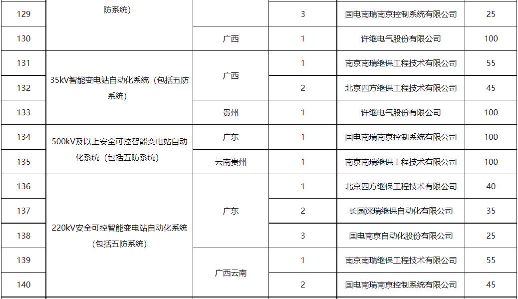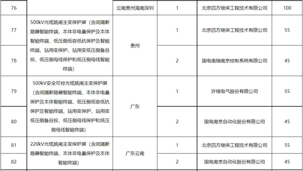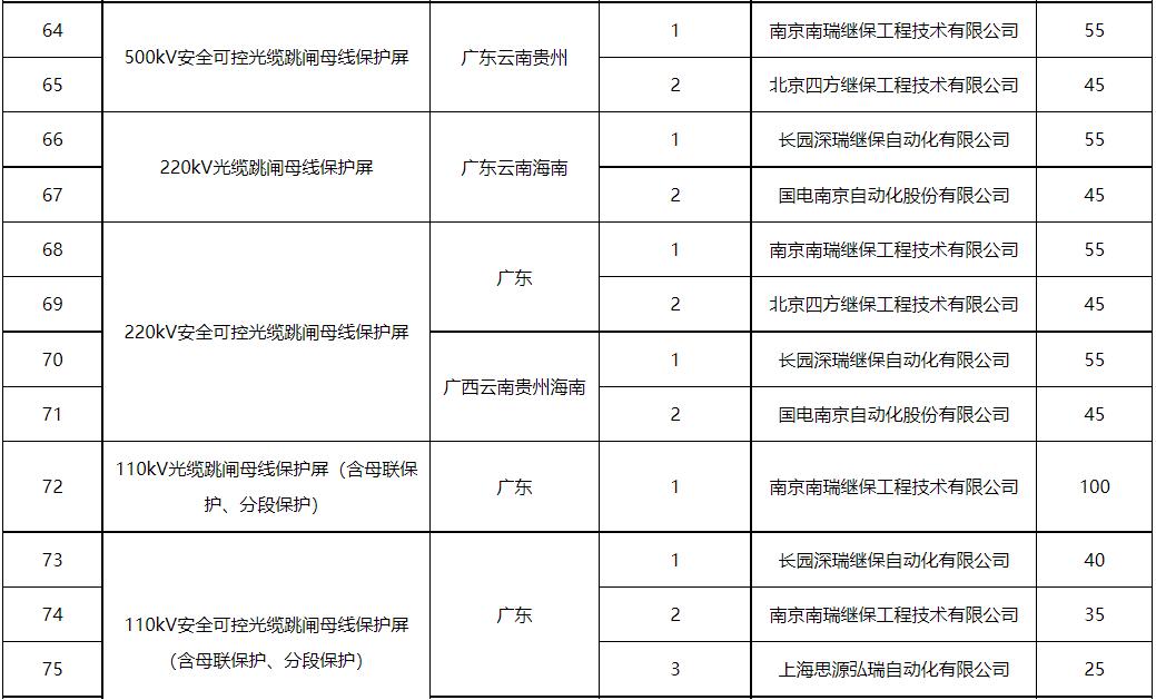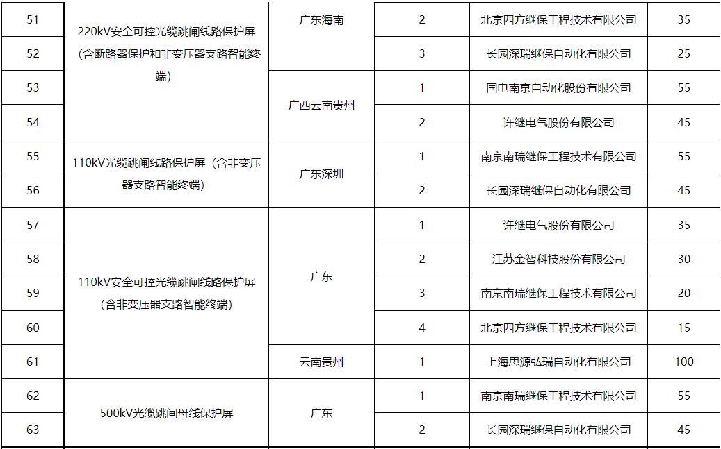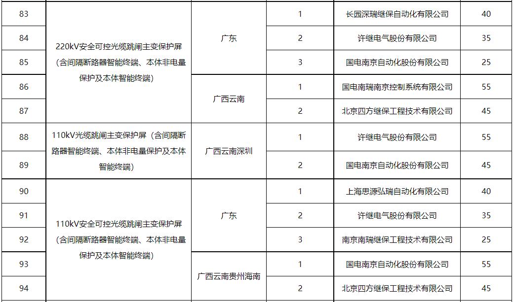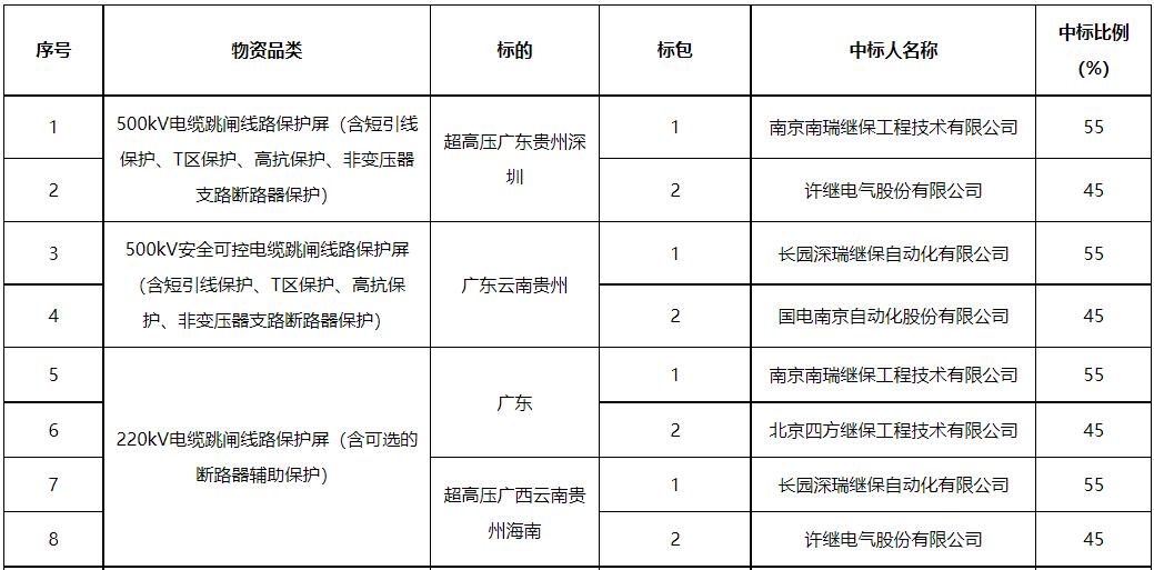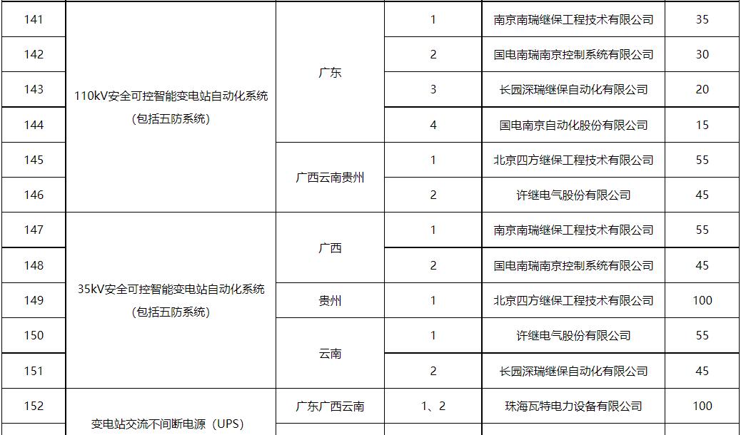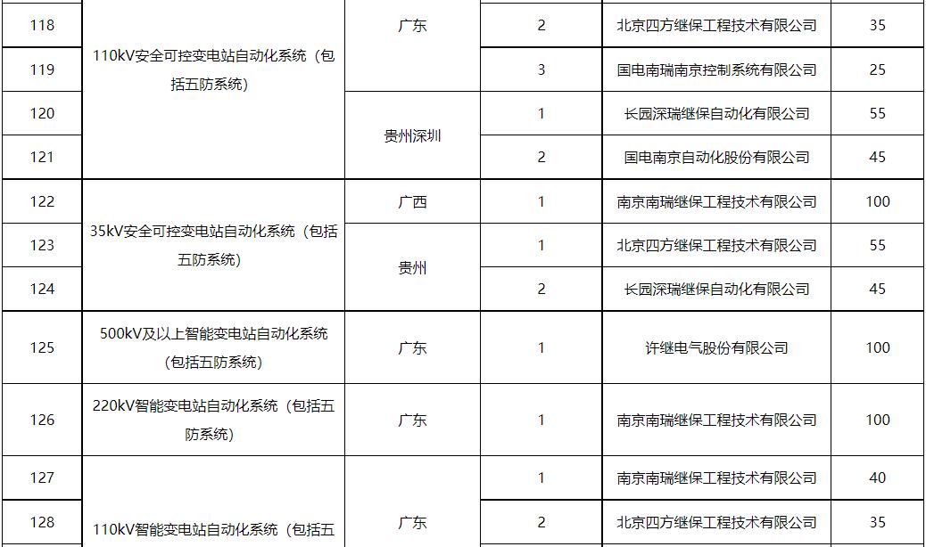 南方电网公司2023年主网保护、厂站自动化及安防设备第一批框架招标项目(招标编号:CG2700022001585642),确定中标人如下: