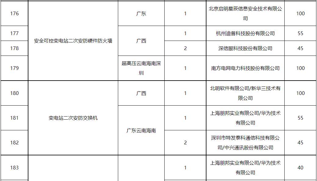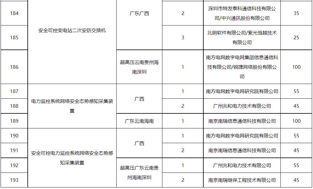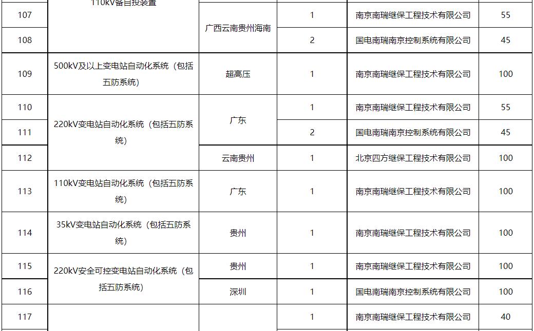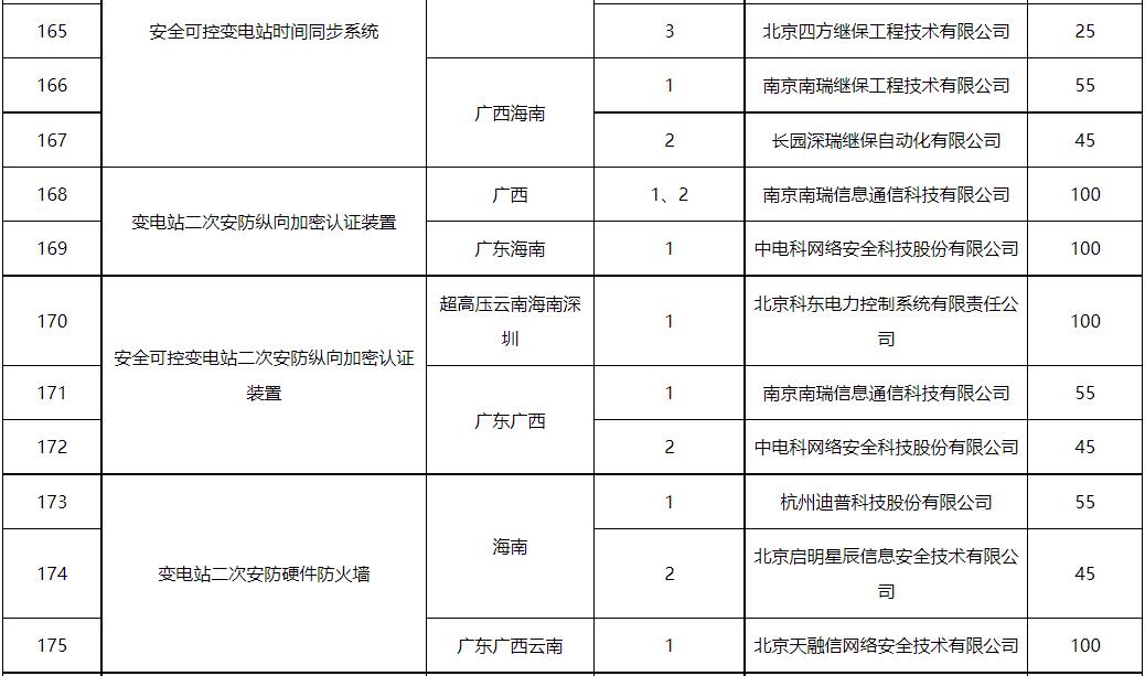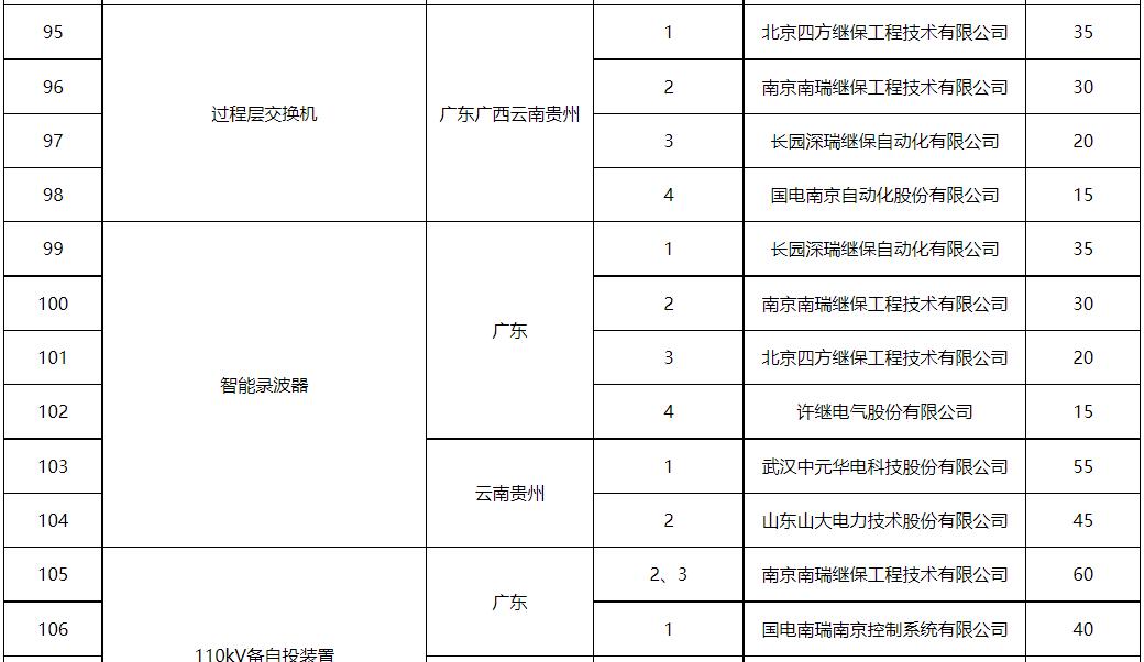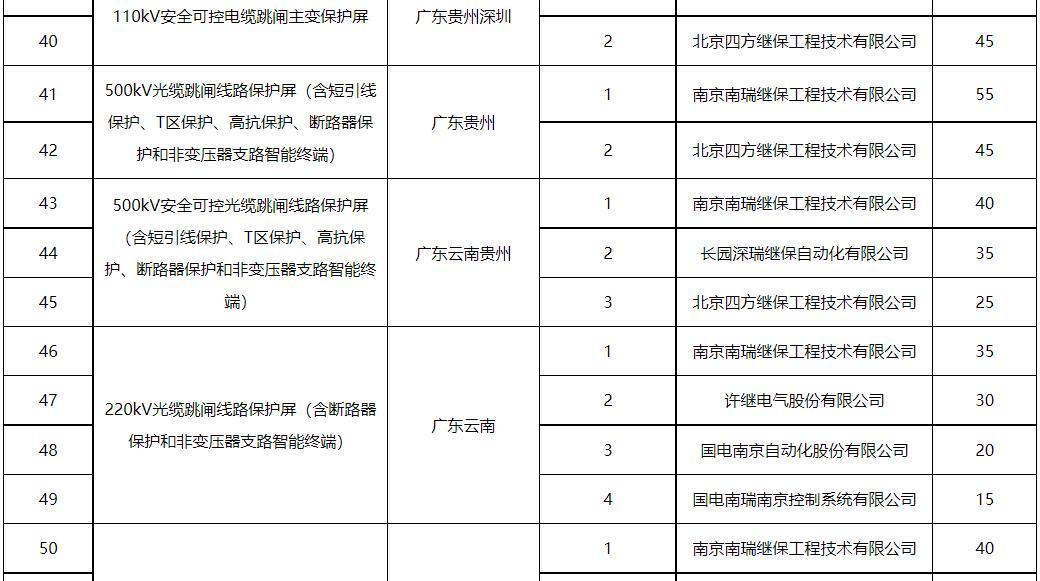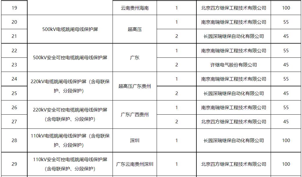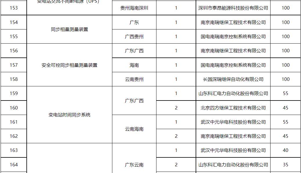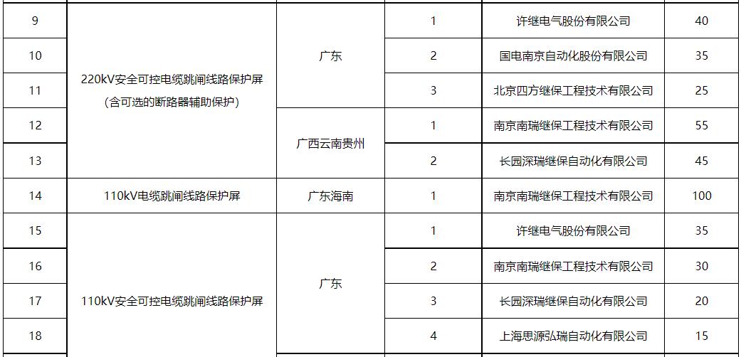 南方电网公司2023年主网保护、厂站自动化及安防设备第一批框架招标项目(招标编号:CG2700022001585642),确定中标人如下: