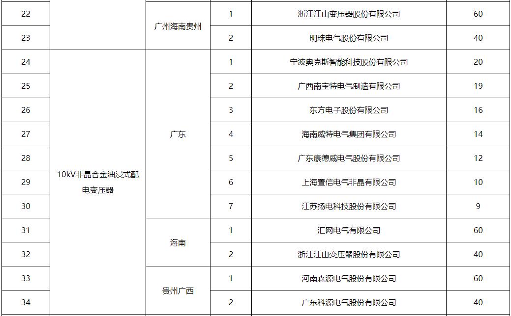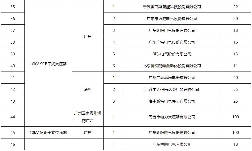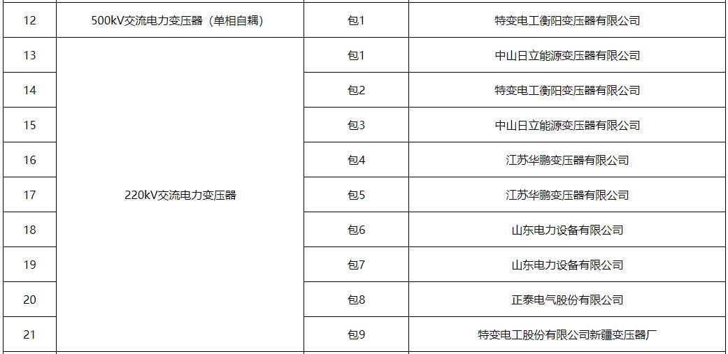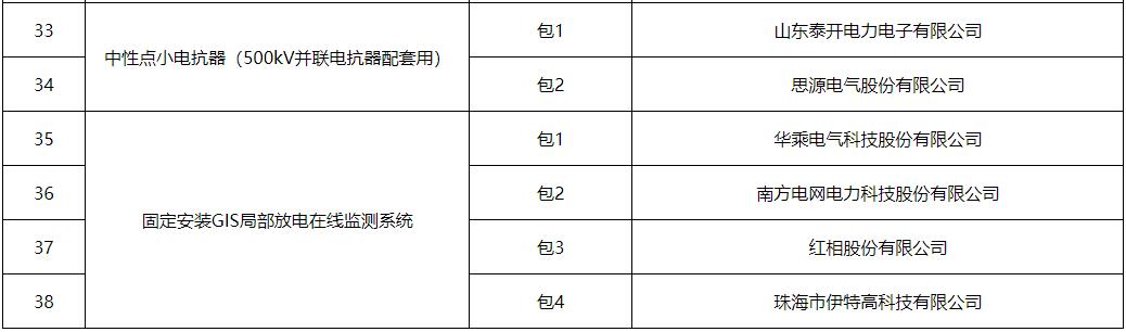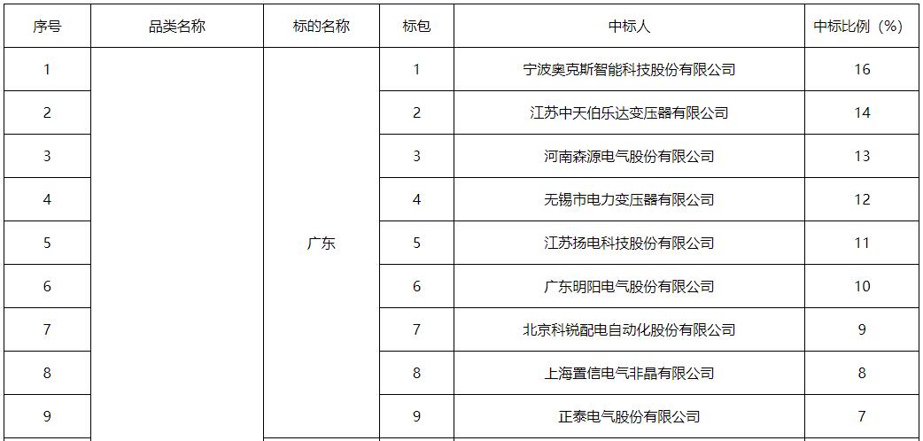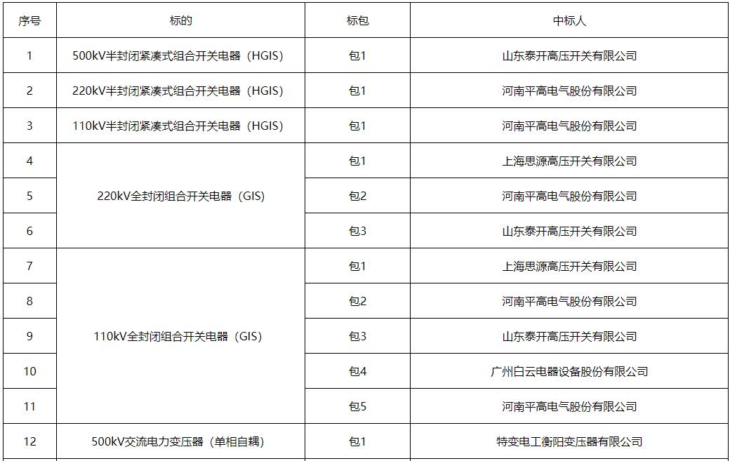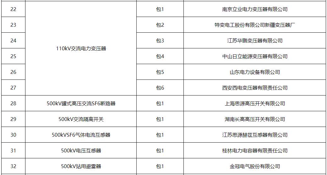 南方电网公司2023年主网一次设备第二批批次招标项目(招标编号:CG2700022001595723),确定中标人如下: