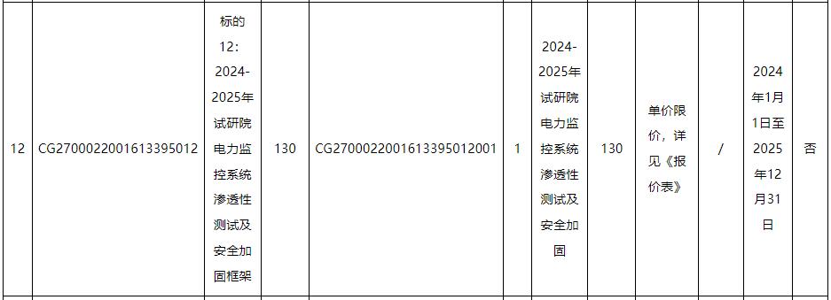 标的12:以相关电力监控系统为渗透性测试及安全加固对象,对其进行渗透性测试、安全基线核查及漏洞扫描、出具安全测评报告、提出整改加固建议并配合完成整改。包括渗透性测试、基线核查、主机漏扫及安全加固工作。