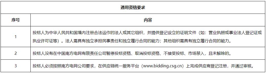 注意:本次招标采用在线开标,不设现场开标环节。投标人可于开标结束后一小时内在南方电网供应链统一服务平台上查看项目解密情况,并完成系统确认,如逾期未确认则视为同意开标结果。