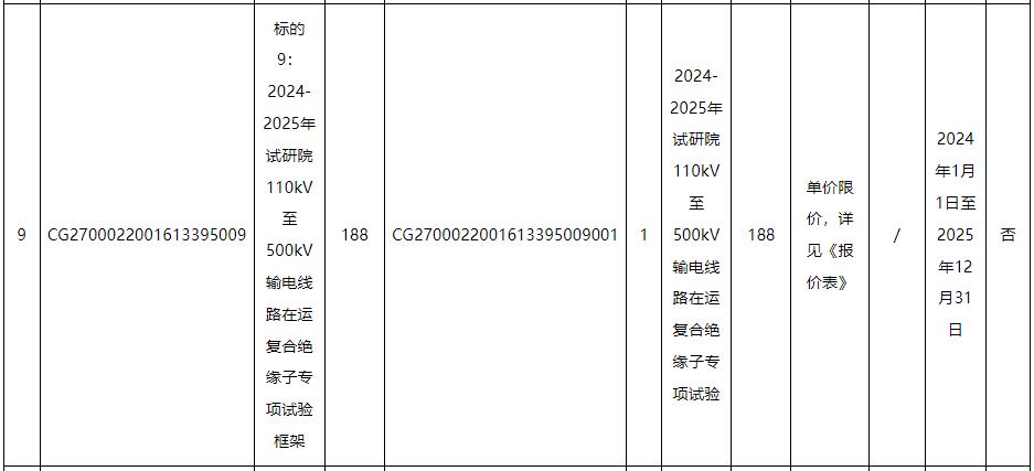 标的9:按抽检策略从在运输电线路抽取复合绝缘子,开展一系列实验室试验,及时发现缺陷隐患,准确评价绝缘子性能。同时开展专项技术分析工作,出具专业的技术分析报告。