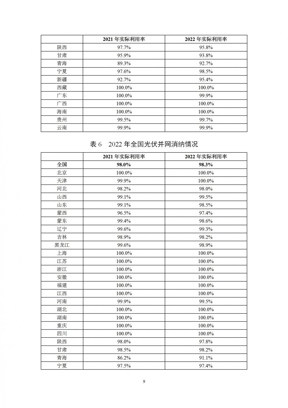 据统计,31个省(自治区、直辖市)中,可再生能源电力消纳占全社会用电量的比重超过80%以上的2个、40%—80%的7个、20%—40%的19个、10%—20%的3个;非水电可再生能源电力消纳占全社会用电量的比重超过20%以上的10个、10%—20%的17个、5%—10%的4个。2022年可再生能源电力消纳总量责任权重完成情况如表1,2022年可再生能源电力消纳非水电责任权重完成情况如表2。