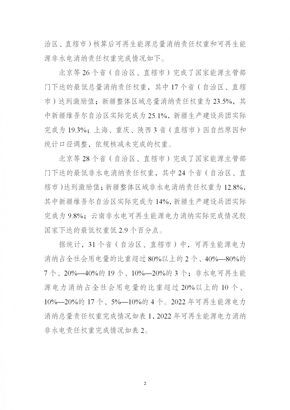 国家能源局关于2022年度全国可再生能源电力发展监测评价结果的通报